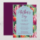 Diese schicke, helle, skurrile Mother’s Day-Brunch-Einladung zeigt ein geometrisches Tulpenmuster mit modernen Skript-Schriftart über einem blauen Hintergrund. Einfaches Update mit Vorlage für den digitalen Download oder Drucke oder beides, um dann Ihr stilvolles Mutter Day Party zu bestellen. Die Farben in diesem Design sind lila, rosa, grün und blau. Design von Frau_Jade.