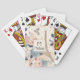 Karten spielen mit einem schönen französischen Motivmuster. Hübsche Blume, Eiffelturm und Schmetterlinge. Die Farben sind pink, blau, pfirsichfarben und creme.