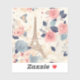 Konfektionieren Sie den Aufkleber mit einem hübschen französischen Motivmuster. Hübsche Blume, Eiffelturm und Schmetterlinge. Die Farben sind pink, blau, pfirsichfarben und creme.