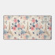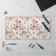 Schreibtischmatte mit französischem Motivmuster. Hübsche Blume, Eiffelturm und Schmetterlinge. Die Farben sind pink, blau, pfirsichfarben und creme.