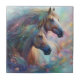 Zwei wunderschöne Pferde mit fließenden Manen und Blume. Eine hübsche künstlerische Kachel.