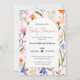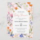 Diese blumige Einladung erfasst die süße Vorfreude auf Elternschaft. Helle Wildblumen und elegantes Drehbuch sorgen für eine herzliche Begrüßung für Ihre Babydusche. (AI-Generated Artwork)
