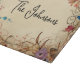 Ein skurriler, blumenreicher Rahmen mit roten, lila und blauen Blumen umrahmt dieses Schnittbrett und verleiht ihm eine boho ästhetische Note. Der Name kann geändert werden. AI unterstützte Grafik, die mit kommerzieller Lizenz erworben wurde. Artwork: RavenPrintableDesign