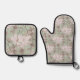 Schöne botanische Blume und Blätter hellgrün Ofenhandschuh & Topflappen-Set