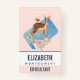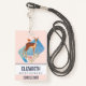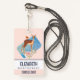 Benennen Sie Abzeichen mit einem hübschen braunen Hirsch mit einem weißen gepunkteten Rücken. Ein kleiner Vogel sitzt auf dem Rücken des Hirsches. Ein extravagantes Blumenstrauß mit Aquarellfarben-Rose und hellolivgrüne Blätter unter den Füßen des Hirsches. Ein blaues Aquarelleck hinter dem Bild. Pfirsichfarbener Hintergrund.