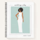 Modernes Hochzeitsspiralheft. Herrliche Braut in einem weißen Hochzeitskleid mit einem einfachen Skript auf türkisfarbenen grünen und weißen Hintergründen. Ideal für Notizen, Ideen, zu dos, Erinnerungen und mehr. Kimberly Brett.