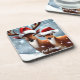Dieses Design zeichnet sich durch einen Buck und eine Doe aus, die im Schnee Weihnachtsmannmützen tragen.
