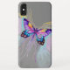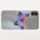 Original Aquarellstift, gezeichnet von Sandra Gale, mit einem hübschen und farbenfrohen, fließenden Schmetterling, der in einen wässrig blauen Farbspritzer hinunter Tropfen. Großartiges Design für Mädchen, Frauen und alle, die kreative und interessante Kunstwerke Lieben.