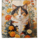 Schöne Calico Katze mit marigold Blume Duschvorhang