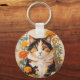 Schöne Calico Katze mit marigold Blume Schlüsselanhänger