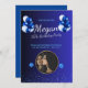 Schönes Blau und Weiß mit bunten Ballons und Glitzer-Abbildung mit Bild auf dieser Geburtstagskarte. Einladung und Ankündigung an Familie und Freunde. Glückliche Feier in Vorbereitung auf die Ansammlung. Einladung anstelle der Geburtstagsfeier.