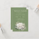 Diese Einladung zur Hochzeit hat ein raffiniertes und elegantes Design mit einem gedämpften, schlauen Hintergrund, das ihm ein natürliches und zeitloses Gefühl gibt. Die Kombination aus tiefgrünen, weißen und goldfarbenen Textelementen verleiht der Einladung eine luxuriöse, klassische und naturlich inspirierte Ästhetik.