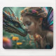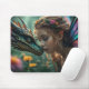 Majestätischer grüner Drache mit ätherischer Feenreiterin – große Gaming-Mauspad von Vhelir Art.