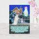 Schöne Eskie und Angel Scripture Card einer farbenfrohen, detailreichen Winterszene mit einem verschmutzten, obdachlosen White American Eskimo Hund, der in einem Schneesturm verloren geht. Der Hund ist auf abgefahrenen Knien und betet mit Pfoten zusammen zu einem herrlichen Angelic Himmlisch Being. Sie hat eine wunderschöne lila-weiße Aura um ihren Kopf und ist am Eingang einer charmanten Zuhause. Sie hat das eiserne Tor für den verlorenen Hund geöffnet und begrüßt den Hund mit ausgestreckten Händen durch das Tor. Sie hat diese Zuhause als neue Zuhause des Hundes bestätigt, indem sie sie mit blauen Glitzern aus dem Himmel umhüllte. Diese Szene begleitet den Bibelverse Matthew 6:33: "Aber seht zuerst nach dem Reich Gottes und nach Seiner Rechtschaffenheit; und all dies wird euch hinzugefügt werden." Diese Karte ist ein wunderbares Geschenk oder kann benutzt werden, um uns an das Wort Gottes zu erinnern.