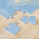 Ufology Puzzle. Eine wunderschöne Alien extraterrestrial mit großen blauen Augen, die in den Weltraum der Sterne und Planeten schauen.