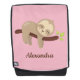 Dieser niedliche Schlampenrücksack wird sicher ein paar Lächeln bekommen. Mit seinem zauberhaften, kleinen Faultier, das auf einem Baum hängt und mit einem Namen auf einem rosa Hintergrund versehen ist, ist es sicher eine Art Tasche auf dem Rücken!