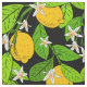Hübsches Fruchtmuster mit Zitronen auf schwarzem Hintergrund.