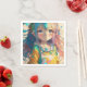 Anime Birthday Gefallen Servietten. Schönes Anime Mädchen mit Pastellfarben, Farben verwendet sind pink, aquamarin, orange, blau, lila und blau. Niedliche und farbenfrohe Kinderkünstlerin. Generatviekonzent
