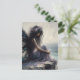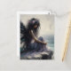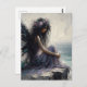 Eine niedliche Fee in einem lila Kleid sitzt auf einer Klippe mit Blick auf die Meeresfantasie AI generiert Kunst