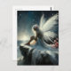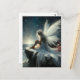 Eine niedliche Fee in einem weißen Kleid sitzt auf einer Klippe mit Blick auf die Meeresfantasy-KI generiert Kunst