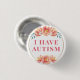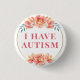 Dieser elegante Knopf zeigt den Slogan "Ich habe Autismus" in eleganter Schrift, umgeben von einem Blumenrand von pfirsichfarbenen wilden Rose. Sie können den Text nach Bedarf bearbeiten. 🌹 Für weitere Buttone mit besonderen Bedürfnissen besuchen Sie bitte mein Geschäft: Zazzle.com/Elder_Vitality 🌹 Für benutzerdefinierte Bestellungen, schreiben Sie mir auf Zazzle