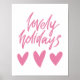 NewParkLane - Weihnachts-Poster, mit 'Lovely Holidays' Wunsch in lustiger, handgezeichneter Typografie und drei niedlichen rosa Herzen. Karo diese Auflistung für passende Elemente aus. Haben Sie spezielle persönliche Designwünsche? Kontaktieren Sie mich bitte!
