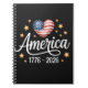 Schöne Flaggenherz 1776-2026 4. Juli 250. Notizblock