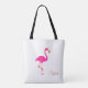 Schöner Magenta Flamingo und stilvolle Kalligraphie auf der weißen Tote Tag.
