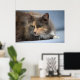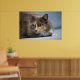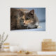 Schöne, flauschige Katze auf graublauem Hintergrun Poster