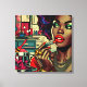 Coole ai-Kunst, die einen farbenfrohen Cartoon im Comic-Stil hübsch afroamerikanische Frau, die Lippenstift in der Küche, Retro-Stil Frau der Farbe.