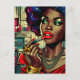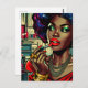 Coole ai-Kunst, die einen farbenfrohen Cartoon im Comic-Stil hübsch afroamerikanische Frau, die Lippenstift in der Küche, Retro-Stil Frau der Farbe.
