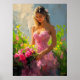 Bewundern Sie die Schönheit und Gnade dieses atemberaubenden impressionistischen Kunstdrucks mit einer Frau in einem rosafarbenen Kleid, umgeben von pulsierenden Blume in einem sonnigen Garten. Dieses Stück besticht durch die Stille und Eleganz der Natur, die sich perfekt für ein romantisches und zeitloses Dekor eignet