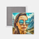 Schöne Frau in Sonnenbrille Reflectoine Magnet