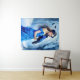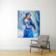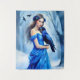 Tapestry in einer Illustration einer jungen Frau in einem blauen Kleid steht in einem schneebedeckten Wald und hält einen Rabe. Die Szene ist ruhig, mit zwei weiteren ravens im Hintergrund fliegen vor einem Hintergrund von nackten Bäumen und einem Dämmerhimmel.