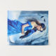 Schöne Frau mit einem Raben in einem Schneewald Wandteppich
