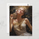 Schöne Frau mit goldenem Glitzer Hintergrund Postkarte