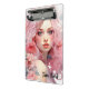 Schöne Frau mit rosa Haar und rosa Kleid Mini Klemmbrett