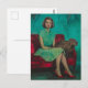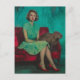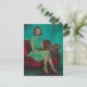 Schöne Frau und Capybara auf dem Sofa Postkarte