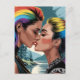 Ein wunderschönes Paar mit Regenbogenhaar, das in einem Wald küsst, weil Liebe Liebe ist KI generiert Kunst