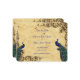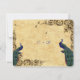 Schönes Design mit hübschen Pfauen, Rollen, filigrane Ecken auf rustikalem Papierhintergrund. Personalisieren Sie Ihre Hochzeitsinformationen.