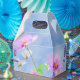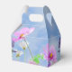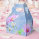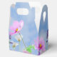 Schöne rosa Blumen und Lavendelwiese an einem hellen Frühlingstag vor blauem Himmel.