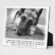 Ein Denkmal für unsere Haustiere, die von dieser Erde weg sind, aber in unserem Herzen leben. Ein wunderschöner deutscher Schäferhund ruht sich aus. In einem schönen Schwarz-Weiß-Finish, macht es eine atemberaubende Hommage. Ein wunderbares Erinnerungsgeschenk für die besondere Person, die dieses besondere Haustier verloren hat. Behalt die Plakette so, wie sie ist, oder personalisiere sie mit dem Namen Ihres Haustieres oder anderen Informationen, die Sie einschließen möchten.