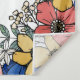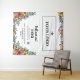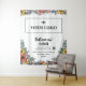 Schöne florale Kulisse für Ihr Unternehmen personalisiert mit Ihrem Logo und Social Media. Fügen Sie auch einen QR-Code hinzu. Gelb, blau und korallenblütig mit Social Media, Logo und Tagline.