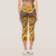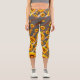 Schöne gelbe Blumen auf grauen, braunen Streifen Capri Leggings