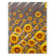 Schöne gelbe Blumen auf grauen, braunen Streifen Notizblock