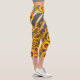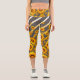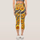 Schöne gelbe Blumen auf grauen, goldenen Streifen Capri Leggings