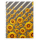 Schöne gelbe Blumen auf grauen, goldenen Streifen Notizblock
