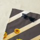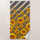 Schöne gelbe Blumen auf grauen, goldenen Streifen Strandtuch