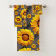 Schöne gelbe Blumen auf grauen, schwarzen Streifen Badhandtuch Set