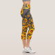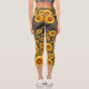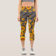 Schöne gelbe Blumen auf grauen, schwarzen Streifen Capri Leggings